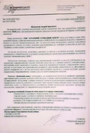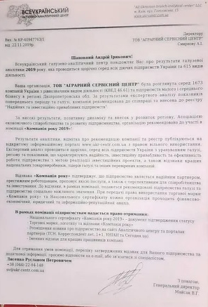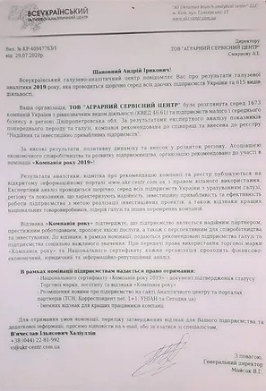 Компанія «Аграрний Сервісний Центр» - позиціонує себе як команду, яка динамічно розвивається, і прагне надати Вам повний спектр послуг і сервісу. Наше підприємство існує в Центральній та Південно-Східній Україні під різними назвами з 2008 року. Успішний розвиток продажів дозволив восени із 2014 року відкритися в новому форматі - Сервісного Центру з широким спектром представлених товарів і послуг для агробізнесу. У листопаді 2016 року підприємство остаточно реєструється і отримує сьогоднішню назву - «АГРАРНИЙ СЕРВІСНИЙ ЦЕНТР».