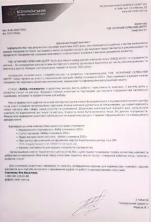 Беззаперечно вірячи у нашу перемогу, ми і сьогодні бачимо нашим клієнтом сучасного, ділового, впевненого в собі сільгоспвиробника, який цінує свій час і справжній, якісний сервіс. Споживач, який звернеться до нас, обов'язково знайде для себе необхідне в широкому асортименті запропонованого товару. Ми йдемо назустріч побажанням наших клієнтів та постійно оновлюємо наші пропозиції і стежимо за розвитком сучасних аграрних технологій. Нашою філософією є розвиток спеціалізованої допомоги у виборі найбільш оптимального шляху вирішення постійно виникаючих технічних проблем, з якими може зіткнутися наш замовник. Наша спеціалізація – розбір та вирішення найбільш складних технічних моментів. Співробітники сервісного центру - майстри своєї справи і володіють достатньою кваліфікацією, щоб допомогти Вам у вирішенні питань та проблем. Вони проконсультують та нададуть інформацію про наявність товарів на складах в Україні, а в разі відсутності в нашій країні необхідного асортименту зможуть в найбільш лояльні терміни замовити доставку товару з- за кордону.